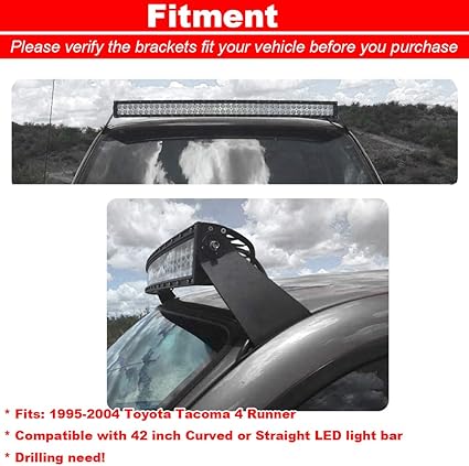 Amazon Com Xjmoto 42 Led Light Bar Upper Roof Windshield Mounting Brackets Compatible With 1995 2004 Tacoma 4 Runner Automotive