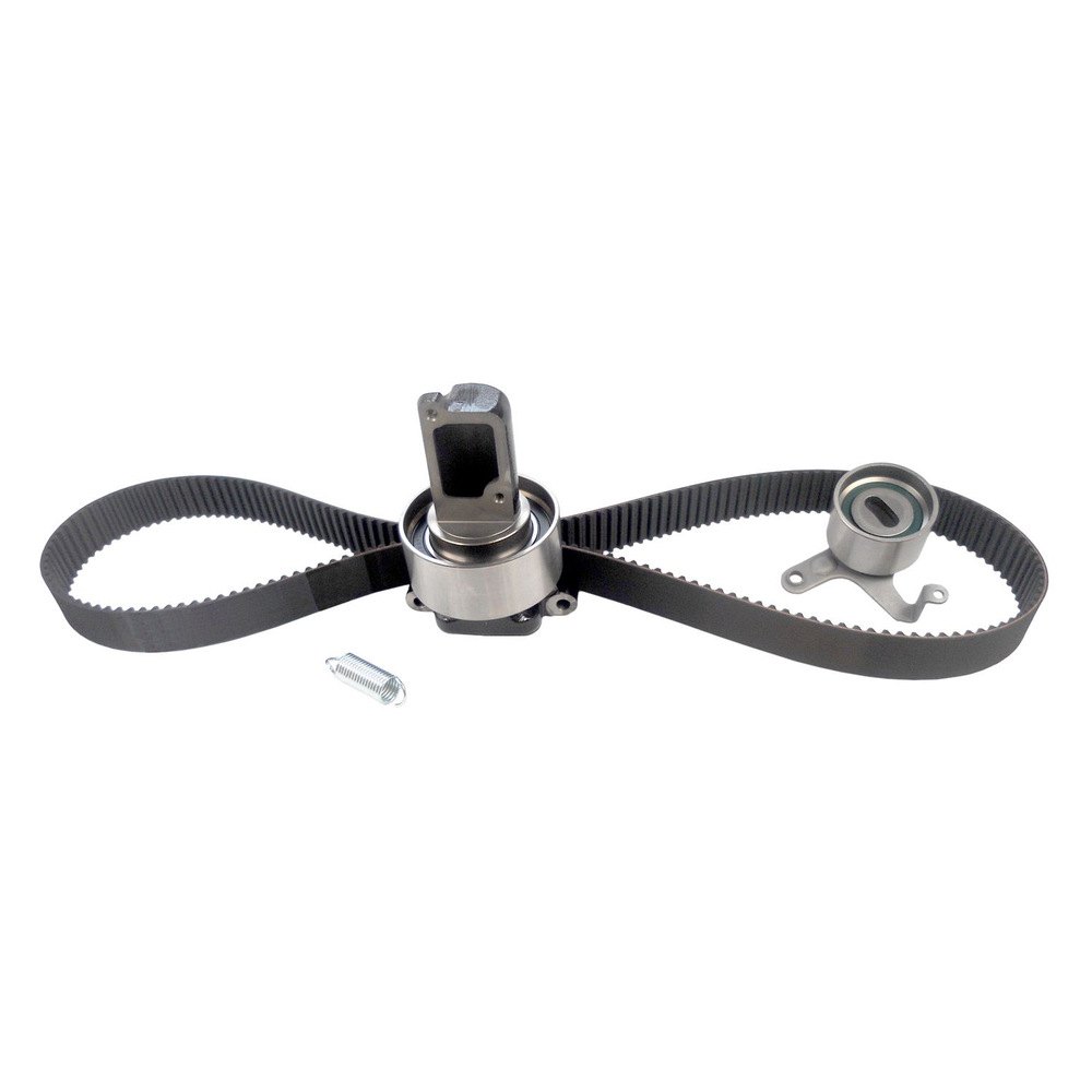 The right parts were received and installed smoothly. Timing belt water pump with gasket auto timing belt tension adjuster upper timing belt idler lower timing belt idler timing belt tensioner spring three accessory drive belts thermostat thermostat gasket front crankshaft seal two camshaft seals featured product brands. Timing belt bando contitech mitsuboshi tensioner.