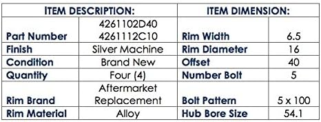 Amazon Com New 16 Inch Replacement Alloy Wheels Rims Compatible With Toyota Corolla 5 Lug 16inch X 6 5inch Bolt Pattern 5x100 Offset 40 Mm Center Bore 54 1 Mm Set Of 4 Pieces Automotive