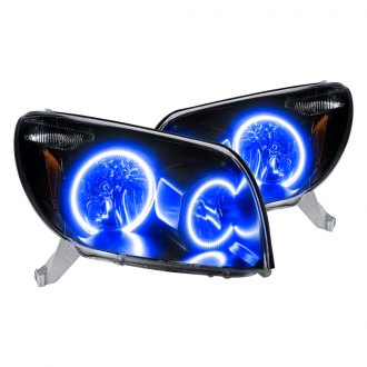 For toyota 4runner headlight 2003 2004 2005 driver and passenger side headlamp assembly replacement. For 2003 2005 toyota 4runner slick black led drl halo rim projector headlights fits. Toyota 4runner with factory projector headlights 2004 black factory style headlights with color halo by oracle lighting 1 pair 2 halo rings per light.