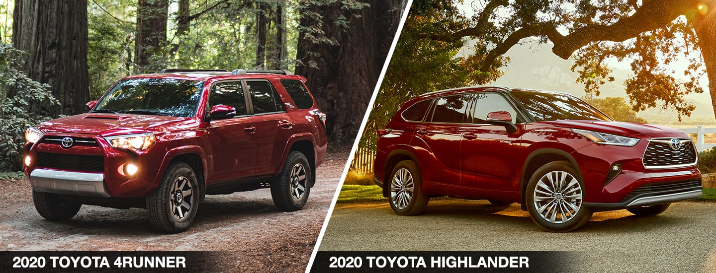 2020 toyota highlander 2020 toyota 4runner. The 2019 toyota highlander and the toyota 4runner represent opposite ends of the spectrum when it comes to trucks but both of these suvs offer excellent utility. The highlander is a more road friendly family vehicle and the 4runner is more of a rugged off roader. Toyotas long popular off road beast the 4runner returns for the 2020 model year with the same impressive towing capabilities up to 5000 pounds and a few tough as nails trd variations that will be able to take you anywhere you need to go on or off the asphalt.