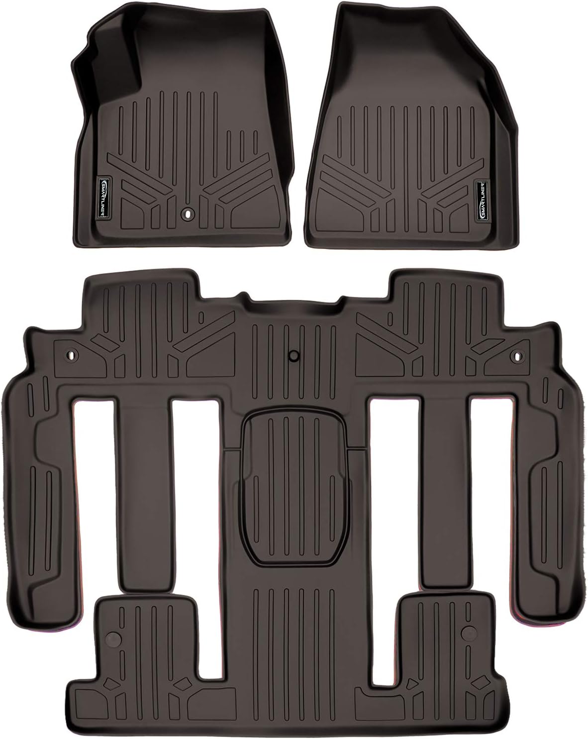Amazon Com Smartliner Custom Fit Floor Mats 2 Row Liner Set Cocoa For Traverse Enclave Acadia Outlook With 2nd Row Bucket Seats Automotive