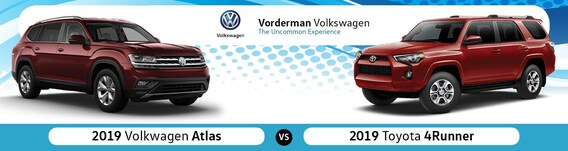 How does the toyota 4runner compare to the volkswagen atlas. Comfort passengers in the backseat will be able to stretch out a lot more in the volkswagen atlas cross sport than in the toyota 4runner due to its greater head and legroom. The destination charge for the toyota 4runner is much higher than that for the volkswagen atlas.