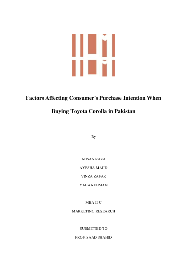 Pdf Factors Affecting Consumer S Purchase Intention When Buying Toyota Corolla In Pakistan Ayesha Majid And Yahya Rehman Academia Edu
